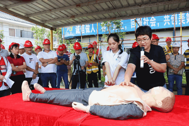 公司还邀请到县第二人民医院梁志娟医生到场进行急救知识讲解,结合日常生活中的真实案例,梁医生向大家详细讲解了应急救护的重要性和基础知识,并现场示范了急救知识的应用,包括现场心肺复苏(胸外按压、人工呼吸)等知识和技能,进一步提高自救互救能力。